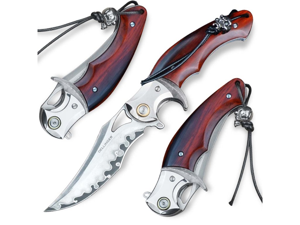 Lovecký zavírací nůž Dellinger Spett Japan SKD11 Steel. Vyroben z japonské nástrojové oceli SKD11, rukojeť ze dřeva Iron-Wood.
