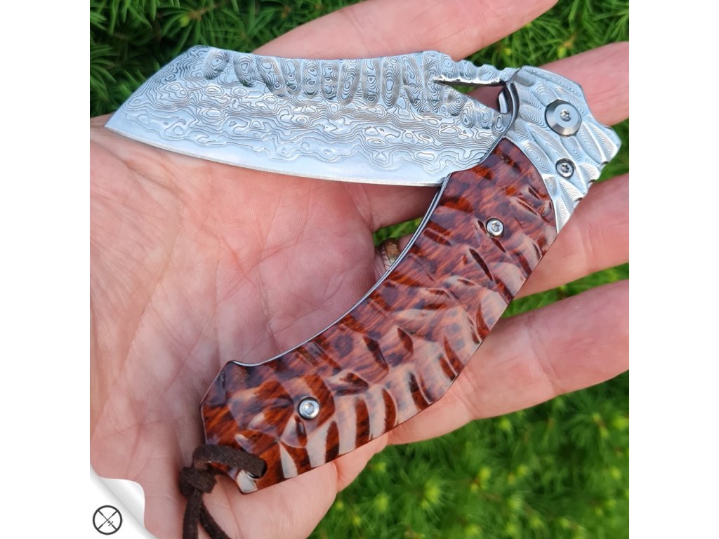 Upozornění Každý nůž je vyroben z přírodních materiálů. Každý kus oceli je originální a nenapodobitelný, proto Váš nůž nemusí vypadat přesně tak jak na fotografii. Nůž, který obdržíte, bude stejně kvalitní a detailně opracovaný, ale může se mírně lišit. |