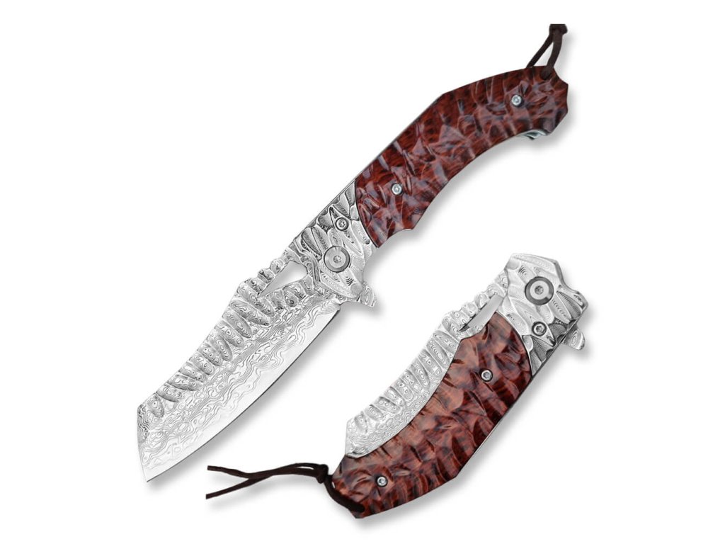 Zavírací nůž Dellinger Tanto Dachser byl navržen předním českým nožířem Radimem Dachsem. Tento kousek má jádro z damaškové oceli VG-10 vložené mezi 66 vrstev 2 nerezových damaškových ocelí. Díky tomu dosahuje tvrdosti kolem 61 HRC, proto je nůž mimořádně ostrý po dlouhou dobu. Navíc vrstvená damašková ocel působí impozantně. Jedná se o menší nůž spadající do skupiny EDC, můžete ho nosit u sebe při každé příležitosti.