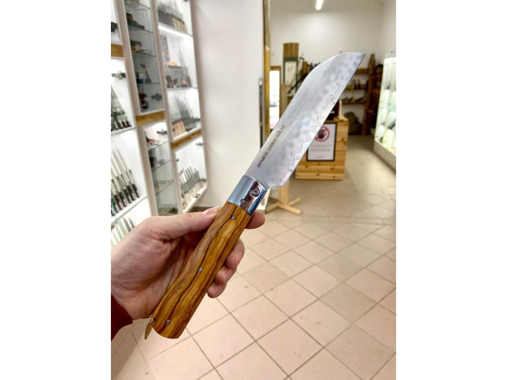 Zavírací nůž Santoku 140 mm Dellinger Olive Guillotine AUS-10 Sanmai