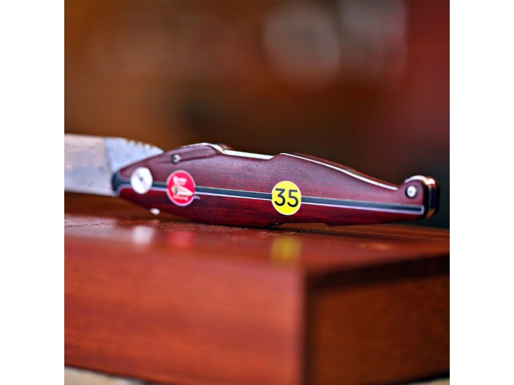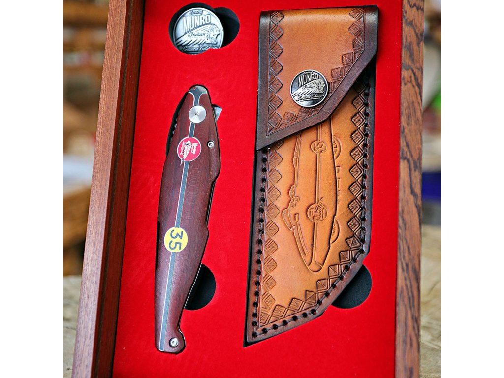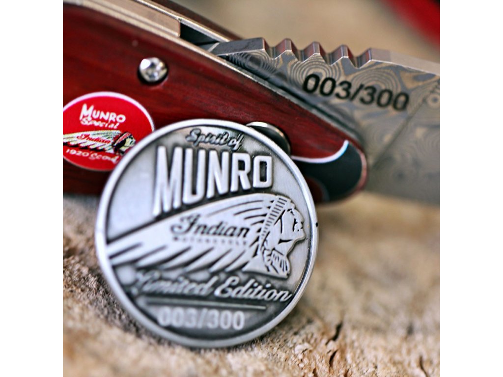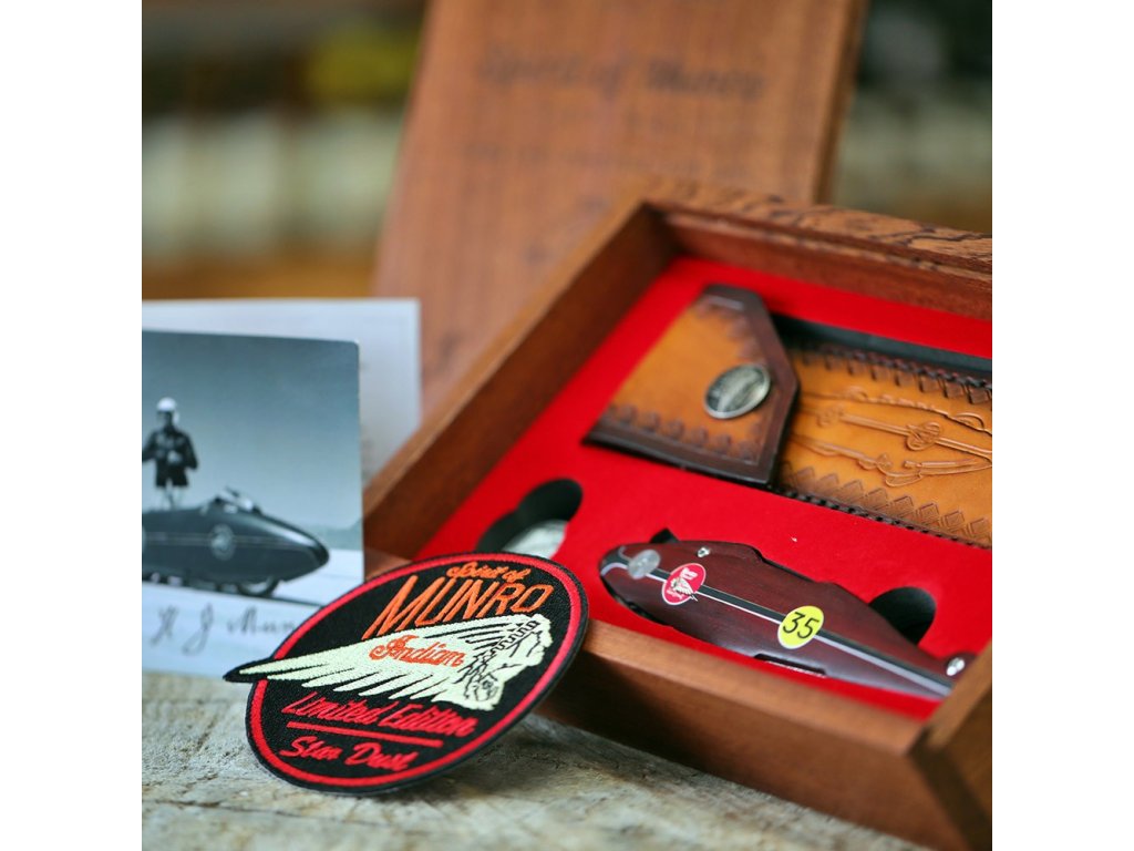 Limitovaný nůž Spirit of Munro – Star Dust vznikl jako pocta legendárnímu jezdci Burtu Munrovi. Každý ze 300 kusů této edice odkazuje na jeho slavný rekord na motorce Indian. Čepel z damaškové nerezové oceli bez jádra je osazena na keramických ložiskách s pojistkou liner lock. Rukojeť z červeného dřeva Redwood nese slavné číslo 35. Nůž je dodáván v palisandrové dárkové krabičce s koženým pouzdrem, kovovým odznakem, nášivkou a certifikátem pravosti.